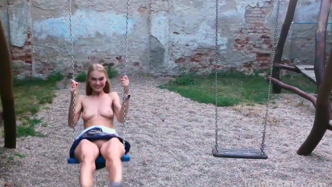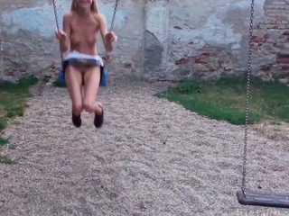 Sexy brunette teen outdoor masturbation