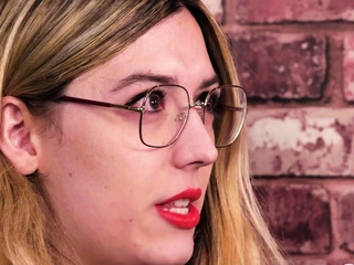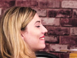 Cute blonde tries to keep her cool during her first XXX scene