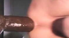 Crossdresser Gapes on Huge Dildo