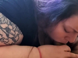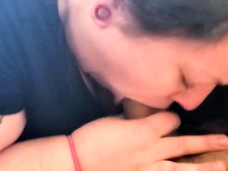 Muscular Tattooed BBW Gives a Blowjob to a Big Cock