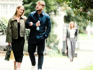 Flirty redheaded girl gets her mouth stuffed with a bulging prick