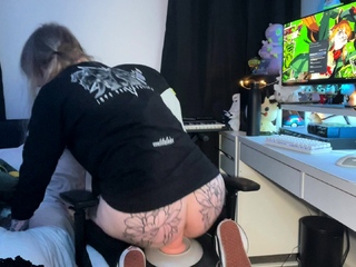 Shemale babe plays her creamy ass with dildo
