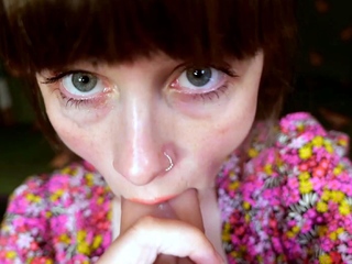 Amateur young brunette enjoys dildo on solo masturbation