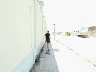 Redhead street whore serves customer outdoor