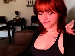 Orange Short Haired Babe Fingering Her Pussy
