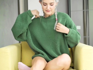 A skinny blonde babe bounces her hot body on a rock hard pole
