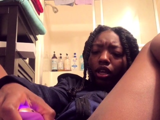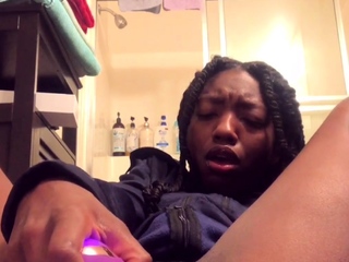 Babe in stockings fucks pussy with toy on webcam
