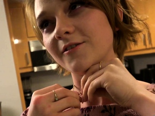 Small titted brunette teen fingering on the bed