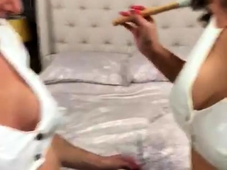 Busty brunette lesbian babes lick and toy pussy