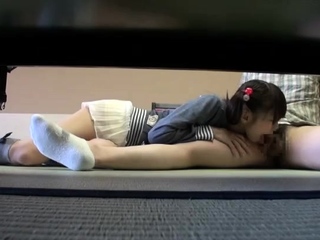 Naughty japanese teen licking ass and blows cock