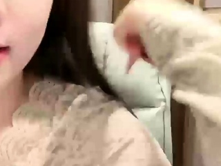 Horny amateur masked Asian teen toying on webcam show