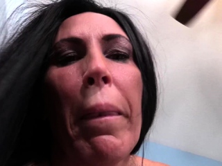 Busty tanned brunette camgirl fucks toy
