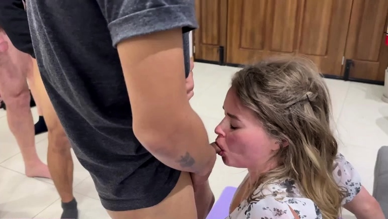 Girlfriend gets her mouth shared blow bang