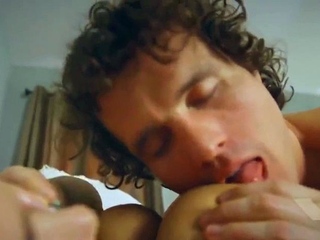 Big boobed babe tit fucks a lucky fuckpole