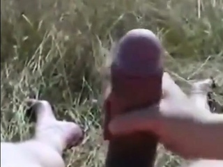 outdoor wanking in the woods near the train track